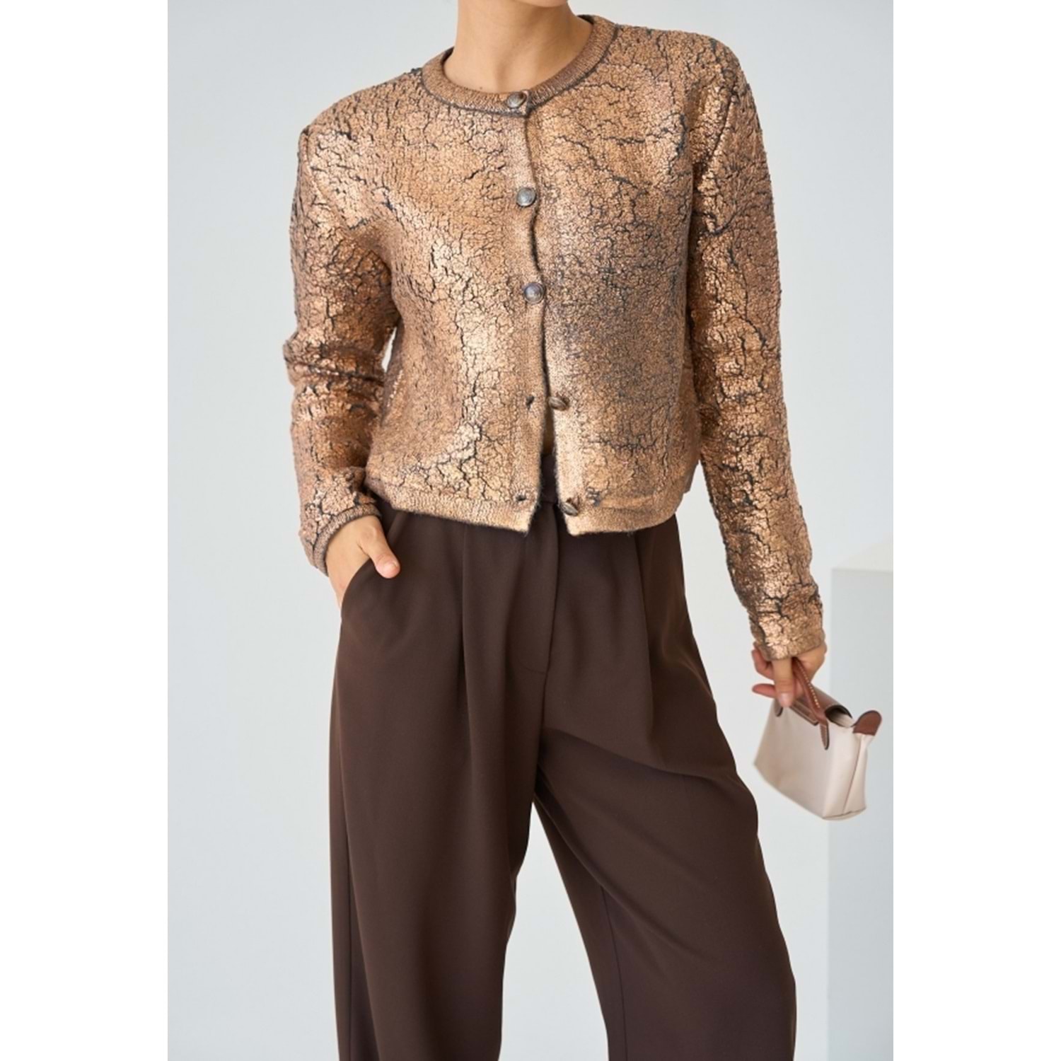 Yeni Sezon Antrasit Bakır Renk Varak Baskılı Hırka