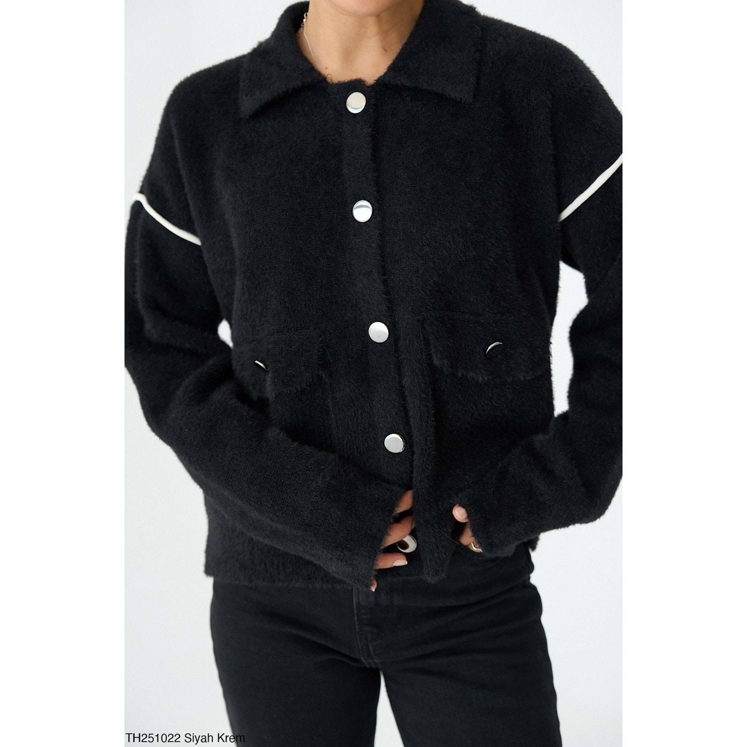 Gümüş Düğme Detaylı Triko Önden Düğmeli Tasarım Hırka - SİYAH - STANDART - ST00588-SİYAH-STANDART