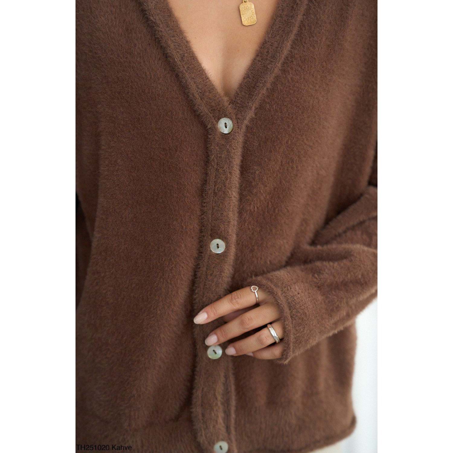 Tüylü Kahve 4 Düğme Kapamalı Tasarım Hırka - KAHVERENGİ - STANDART - ST00600-KAHVERENGİ-STANDART
