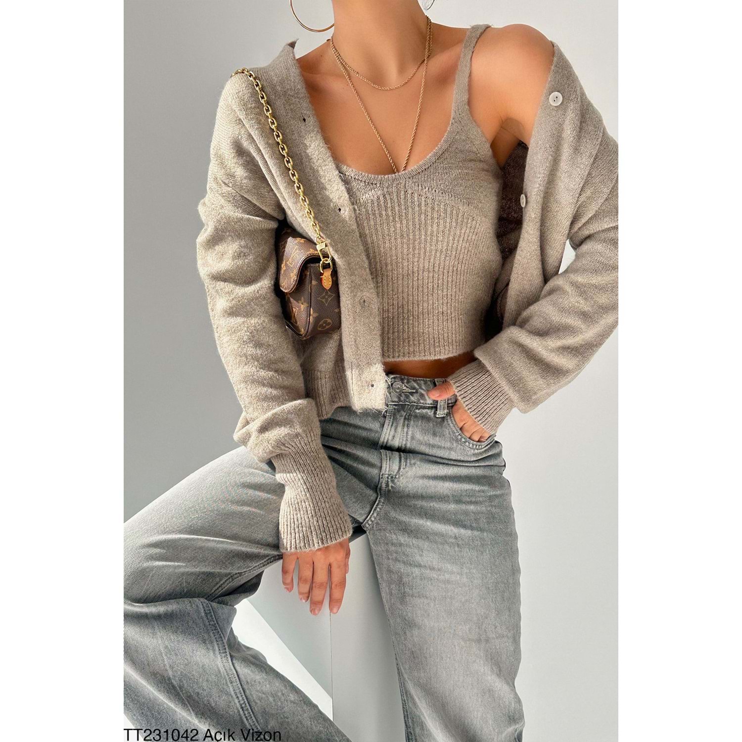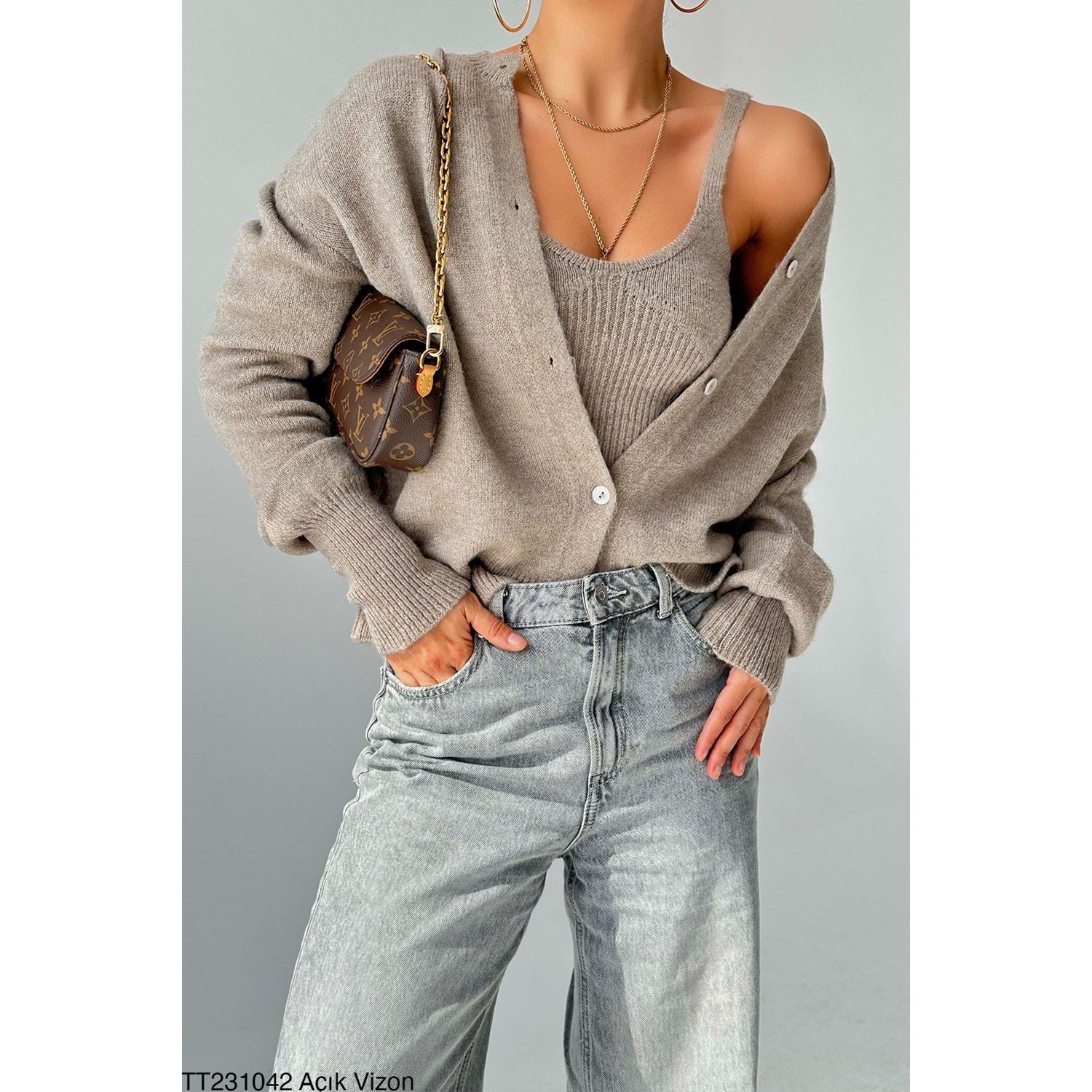 Vizon Renk Atlat Hırka 2 Parçalı Takım