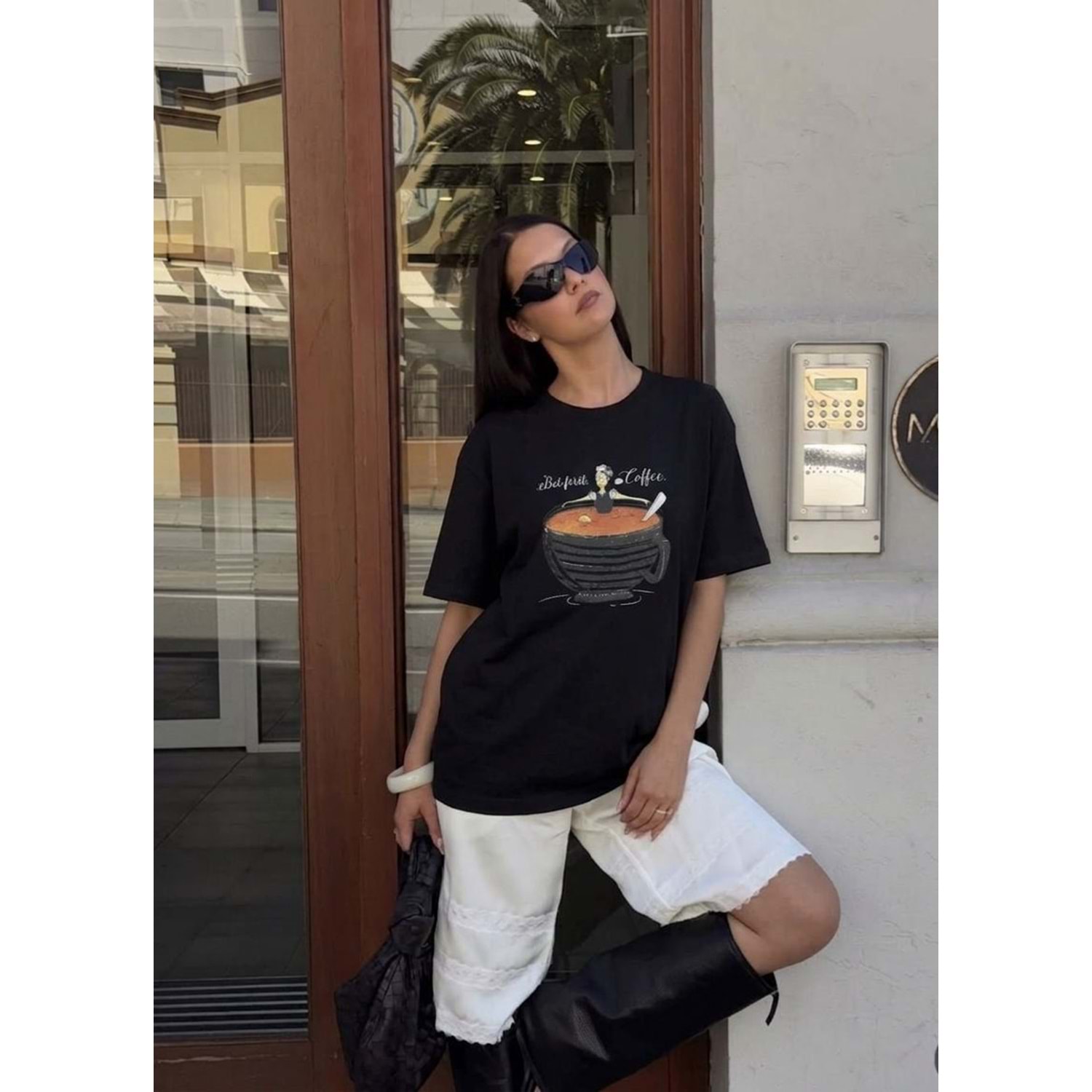 But 1st Coffee Baskılı Oversize Standart Beden T-Shirt