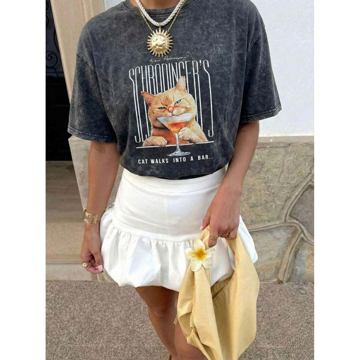 Cat Walks Kedi Baskılıo Yıkamalı Oversize T-Shirt