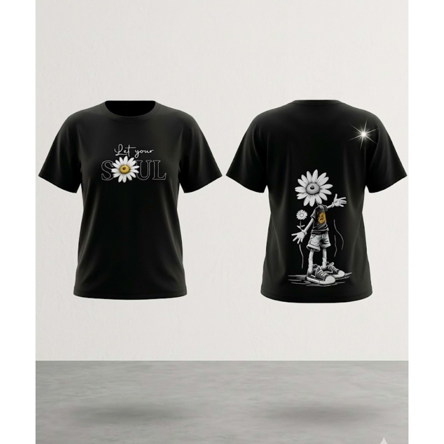 Kız Çocuk Papatya Sırt Baskı Detaylı T-Shirt Yeni Sezon - SİYAH - 11 YAŞ