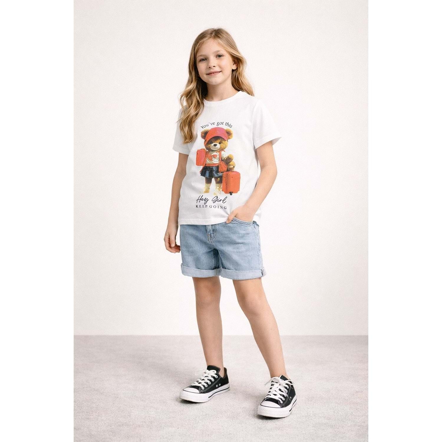 Kız Çocuk Teddy Bear Baskılı Regular T-Shirt - BEYAZ - 10 YAŞ