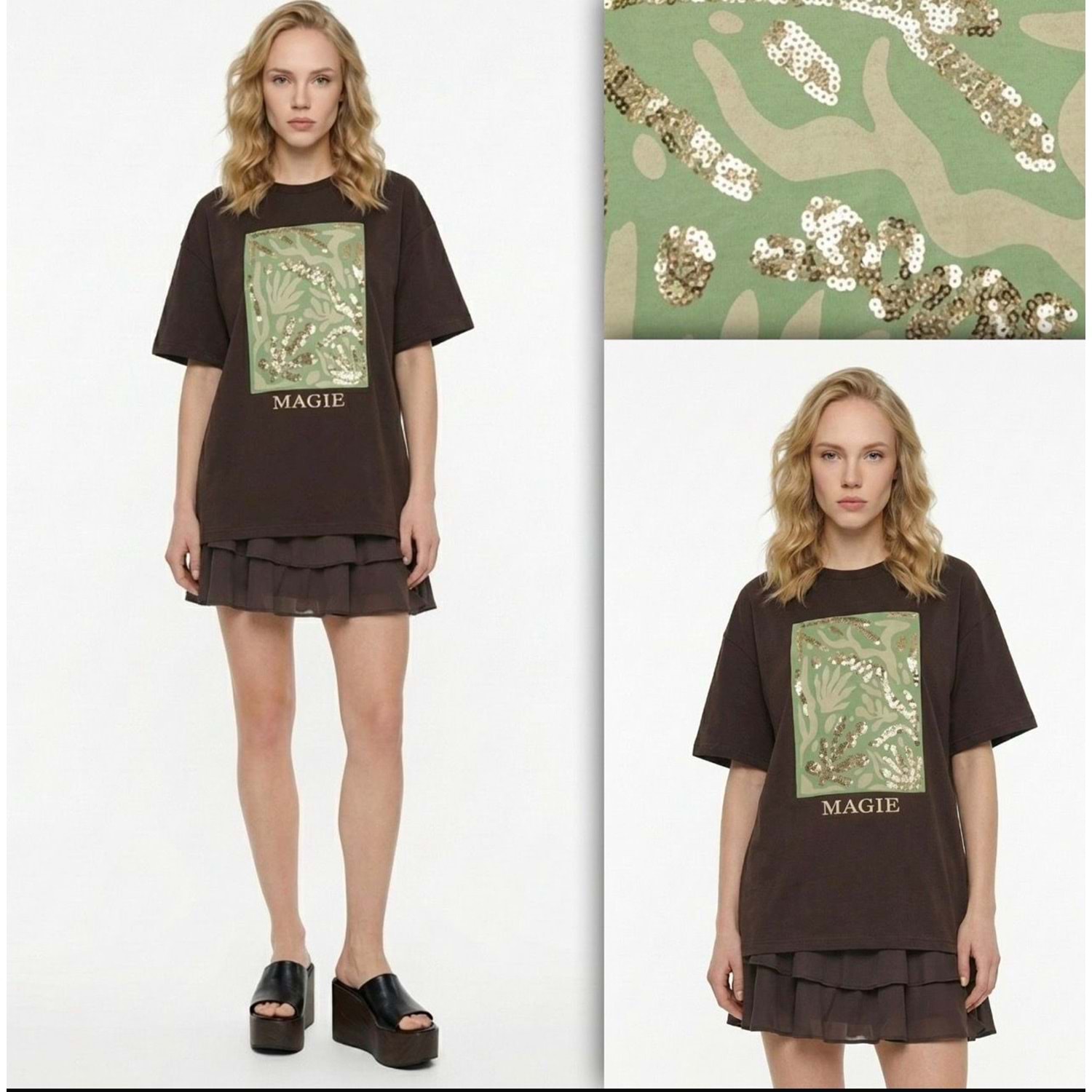 Magie Pul İşlemeli Graphic T-Shirt - Acı Kahve - Acı Kahve - L
