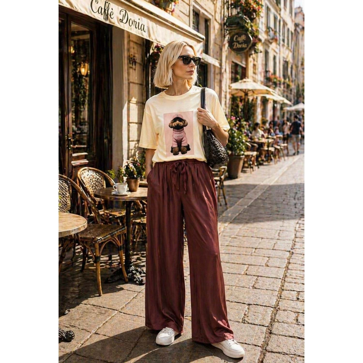 Paris Teddy Daily Chick Mode Baskılı Premium T-Shirt - PASTEL PEMBE - L - ST01114-PASTEL PEMBE-L