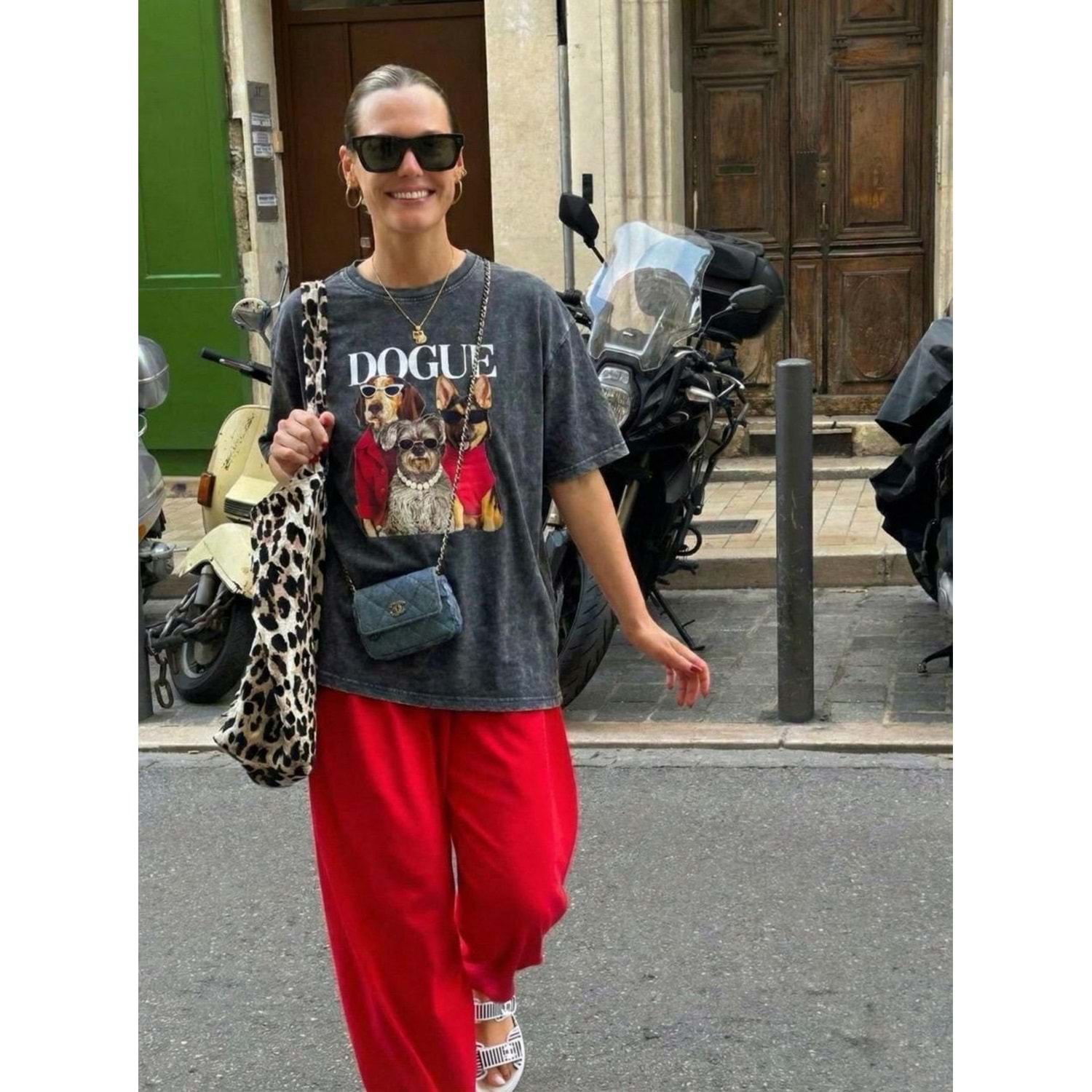 Yıkamalı Antrasit Renk Dogue! Baskılı T-Shirt Standart Beden