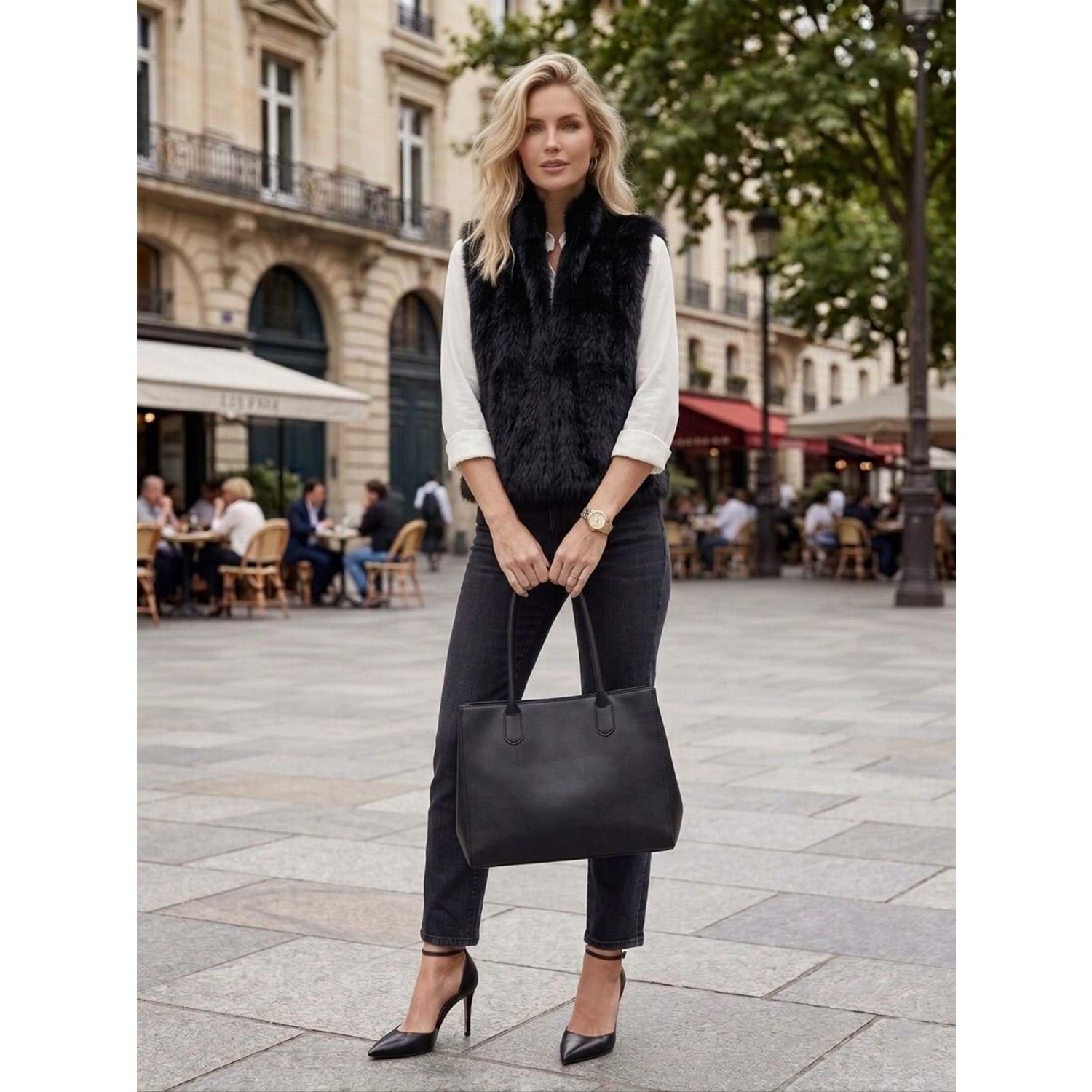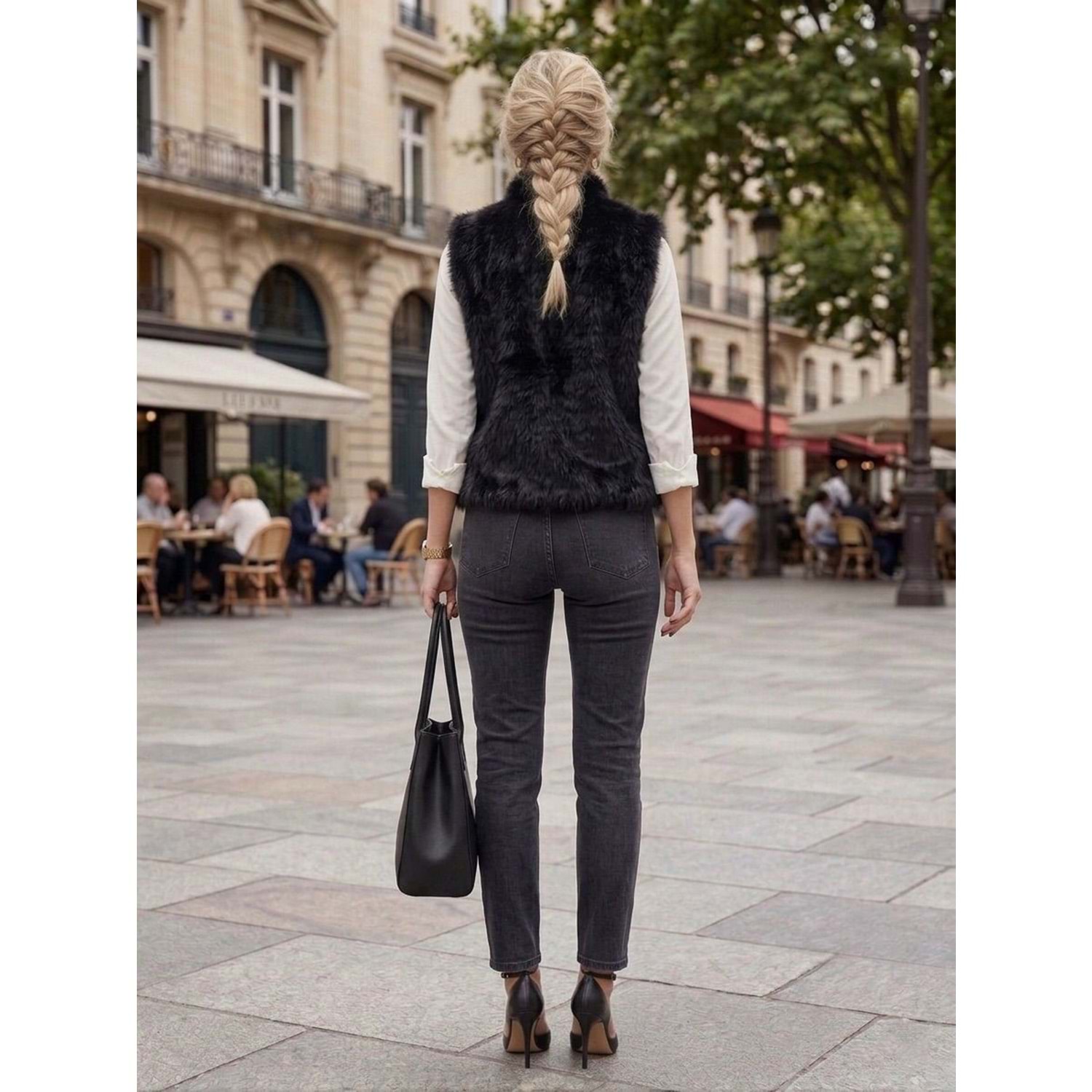 Kürk Yelek Gizli Çıtçıt Kapama - SİYAH - L - ST00398-SİYAH-L